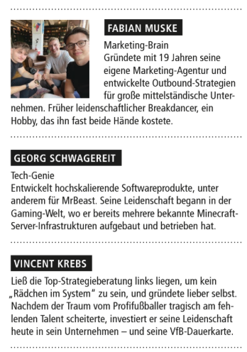 Fabian: Deshalb war uns von Beginn an wichtig, Georg als „Techie“ im Gründungsteam zu haben. Er hat bereits hochskalierende Softwareprojekte umgesetzt, unter anderem für den weltweit größten YouTuber „MrBeast“. Diese Erfahrung merkt man der Plattform an: Prozesse sind nicht „zusammengeklickt“, sondern von Grund auf für Skalierung, Datenkonsistenz und operative Tiefe gebaut.